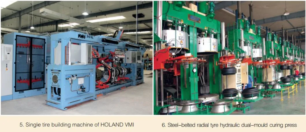 Quality is controlled through premium materials (natural rubber from Malaysia/Thailand, premium steel cord), fully automated production lines, and 100% inspection including X-ray, uniformity, and dynamic tests.